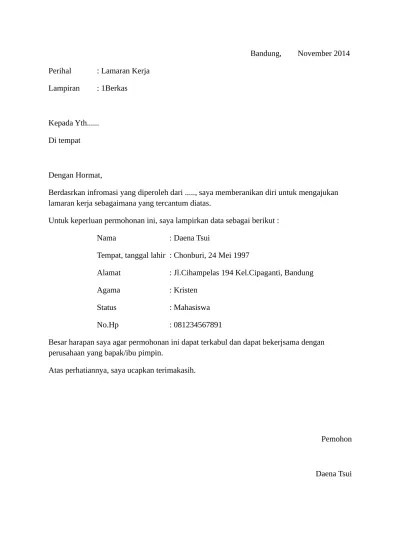 Contoh surat lamaran kerja dan cv terbaru sugeng story. Contoh surat lamaran pekerjaan lengkap dan tips cara membuat . By thekingofstress september 13, 2019 post a comment. Lowongan kerja perusahaan daerah air minum rejang lebong . Bone dit e m p a t perihal :
